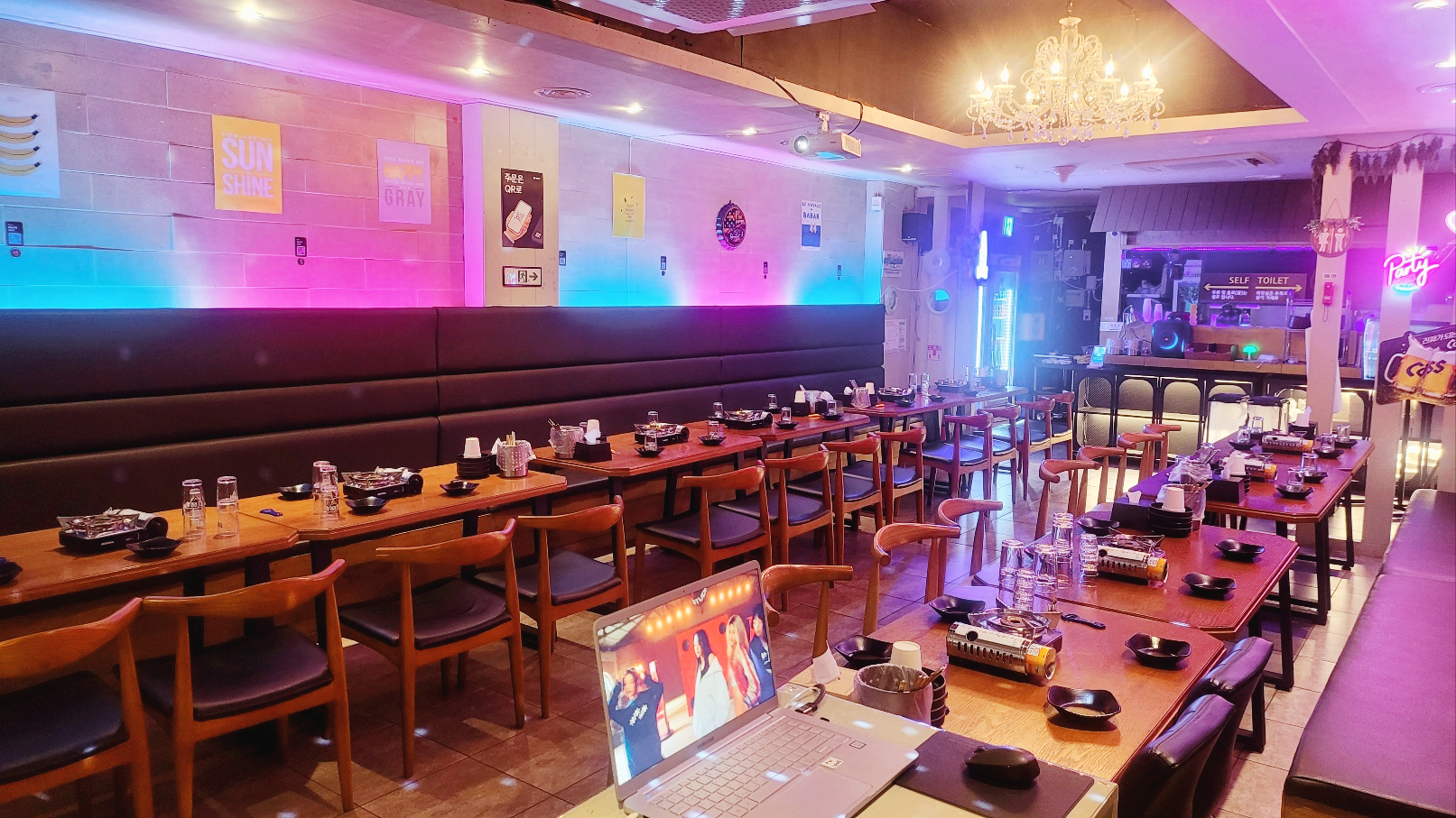 신입생환영회 개강파티에는 영상 꼭 틀어야 하잖아요. 여기는 대형 스크린이랑 빔프로젝터가 이미 다 세팅되어 있어요. 노노트북도 자유롭게 이용할수 있어요. 몸만 오시면 끝이에요!